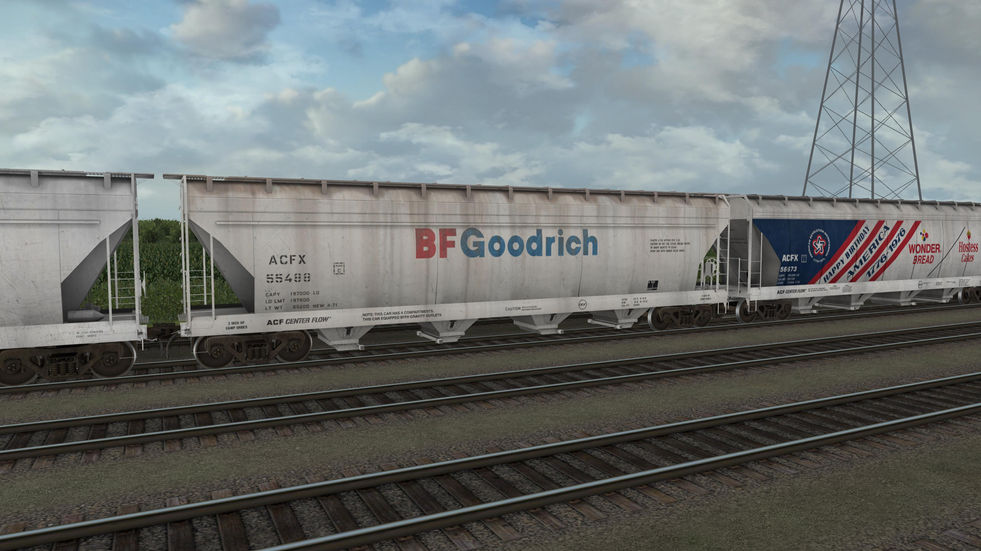The American Car & Foundry (ACF) covered hoppers are almost ubiquitous on many railroads across North America, and have been for the past 60 years. The many variations of this car have been used bulk service carrying grain, fertilizer, and chemicals. This freight pack includes a variety of ACF hoppers in both 49’ and 54’ lengths, along with 3 and 4 bay variations.