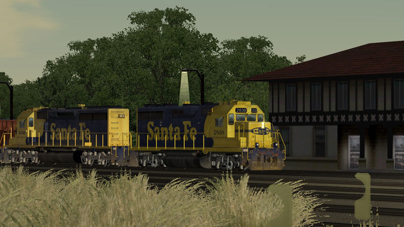 Several locomotives, including ATSF GE B40-8s, ATSF C44-9Ws
