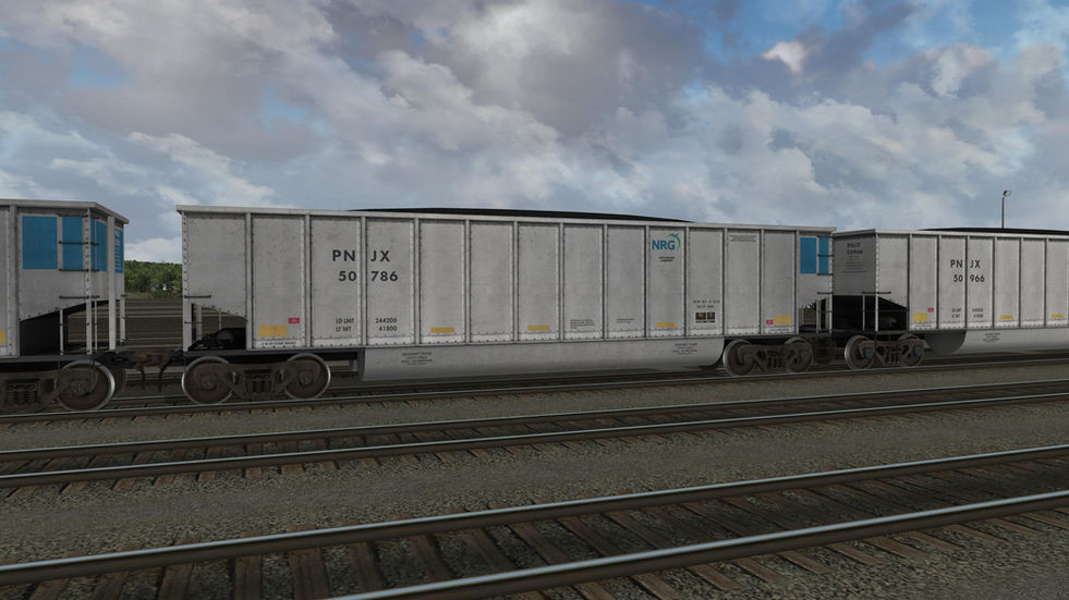 A selection of Johnstown America Bethgon coal gondolas, currently the most common form of coal car in service across North America.